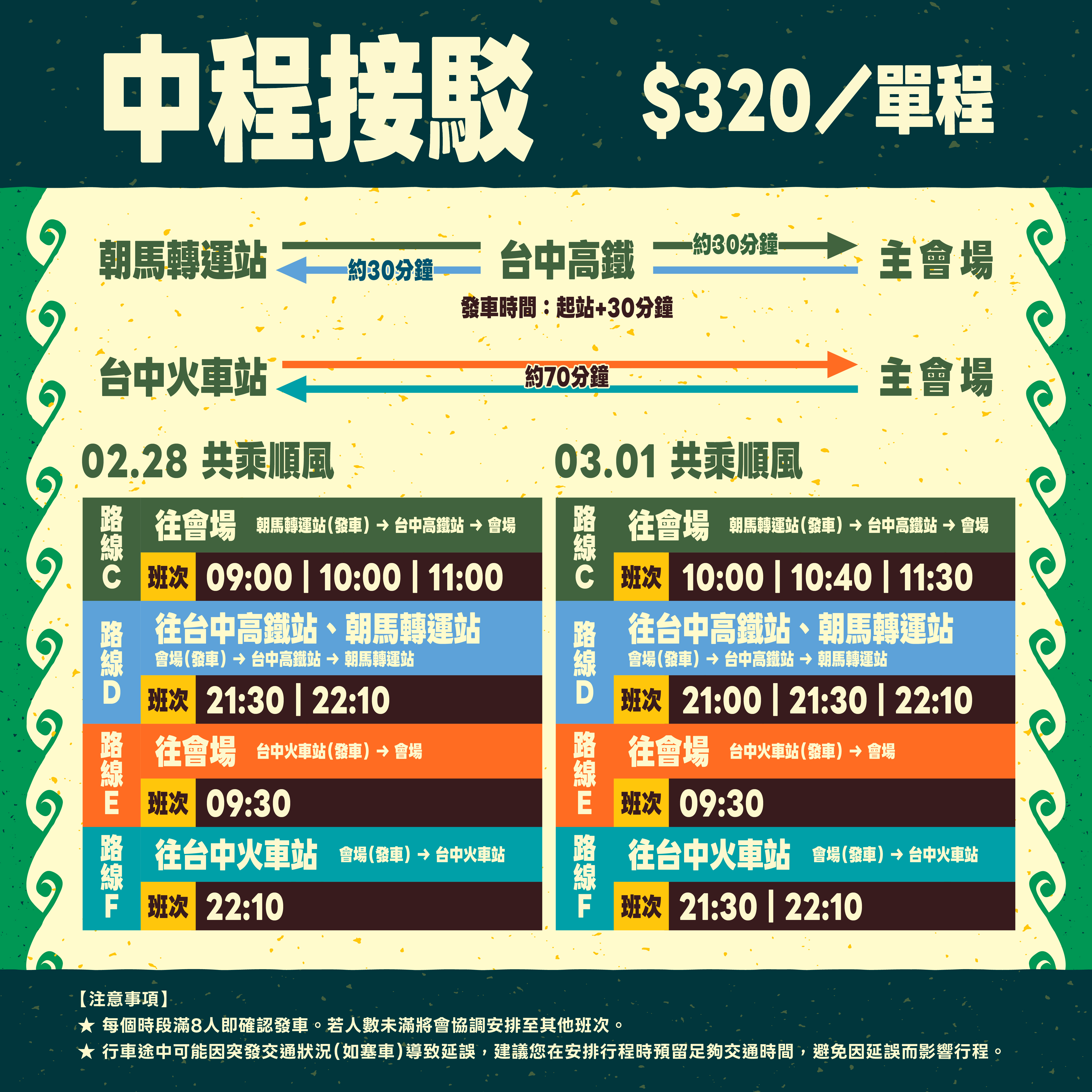 加開18:00、20:00、22:30 (往臺中港旅客服務中心方向) |